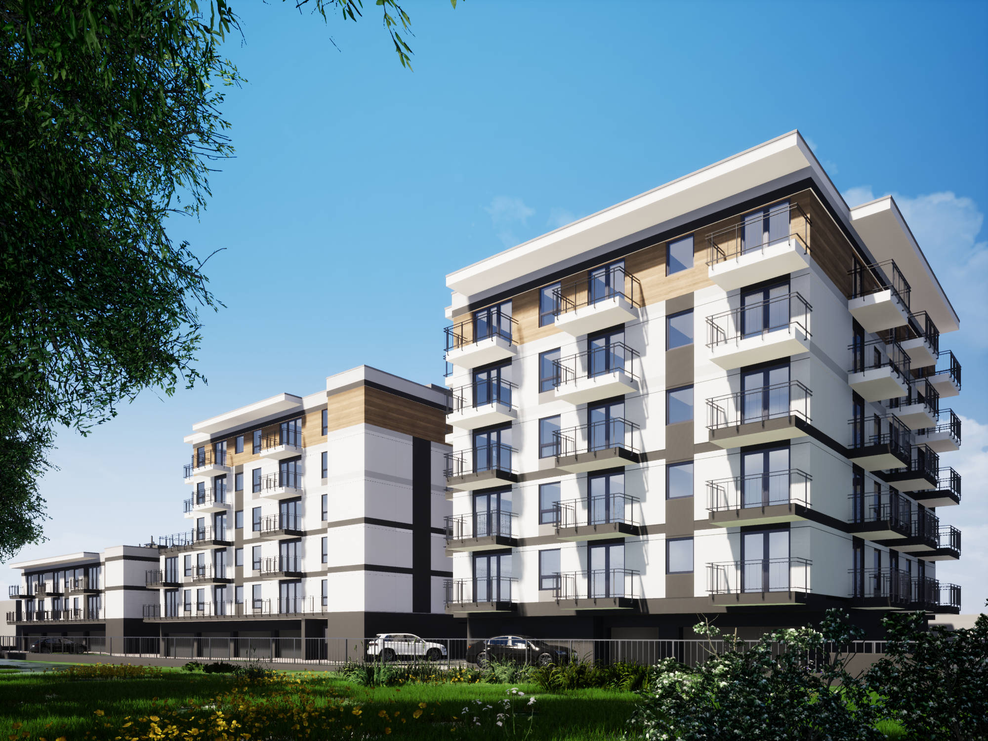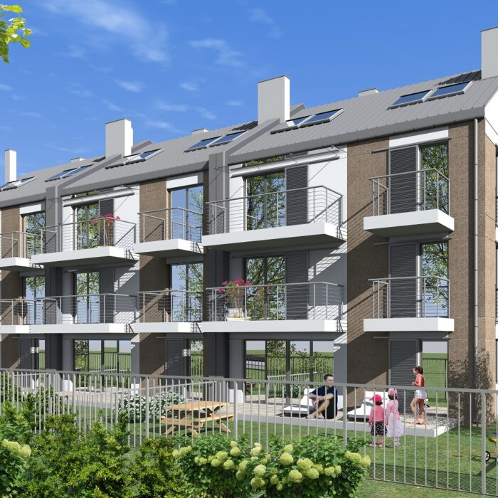 Projekt został stworzony z myślą o komforcie mieszkańców – funkcjonalne wnętrza, duże przeszklenia i minimalistyczna architektura nadają budynkom nowoczesny charakter, a zielone ogródki zapewniają dodatkową przestrzeń do wypoczynku.